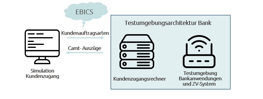 - Abdeckung von Firmenkunden-Szenarien: Einreichung aller gängigen EBICS-Auftragsarten inkl. Signaturen und Initialisierung – realitätsnahes Frontdoor-Testing statt künstlicher Laborszenarien.